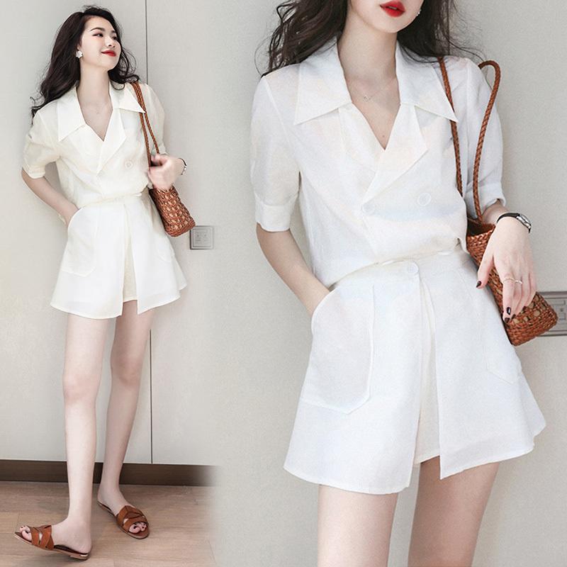 セットアップ レディース 40代 春夏 半袖ブラウス 白vネック ショットパンツ オシャレセットアップ ビジネス Ol大人可愛い 着痩せ Y Fairyhouse 通販 Yahoo ショッピング